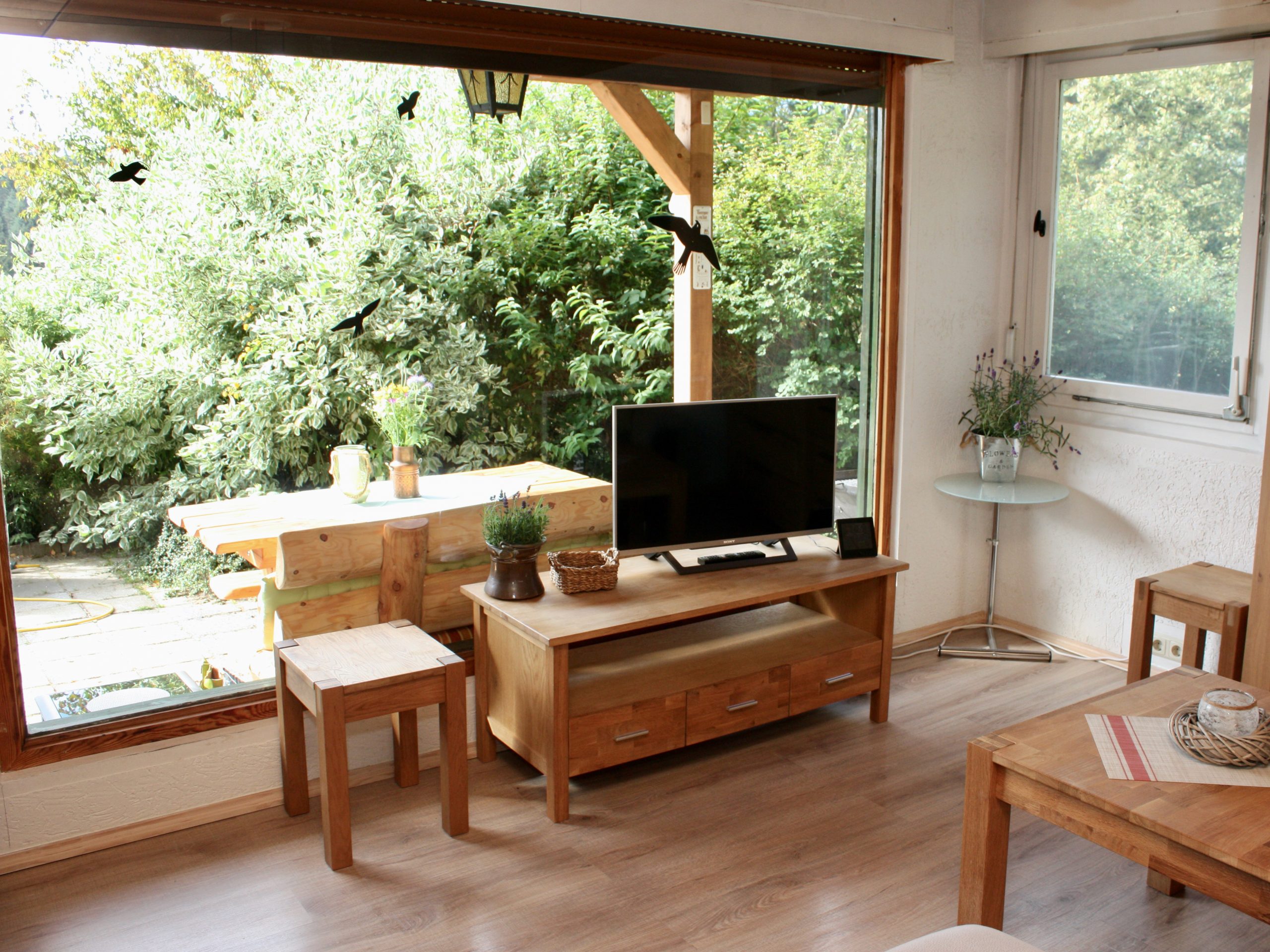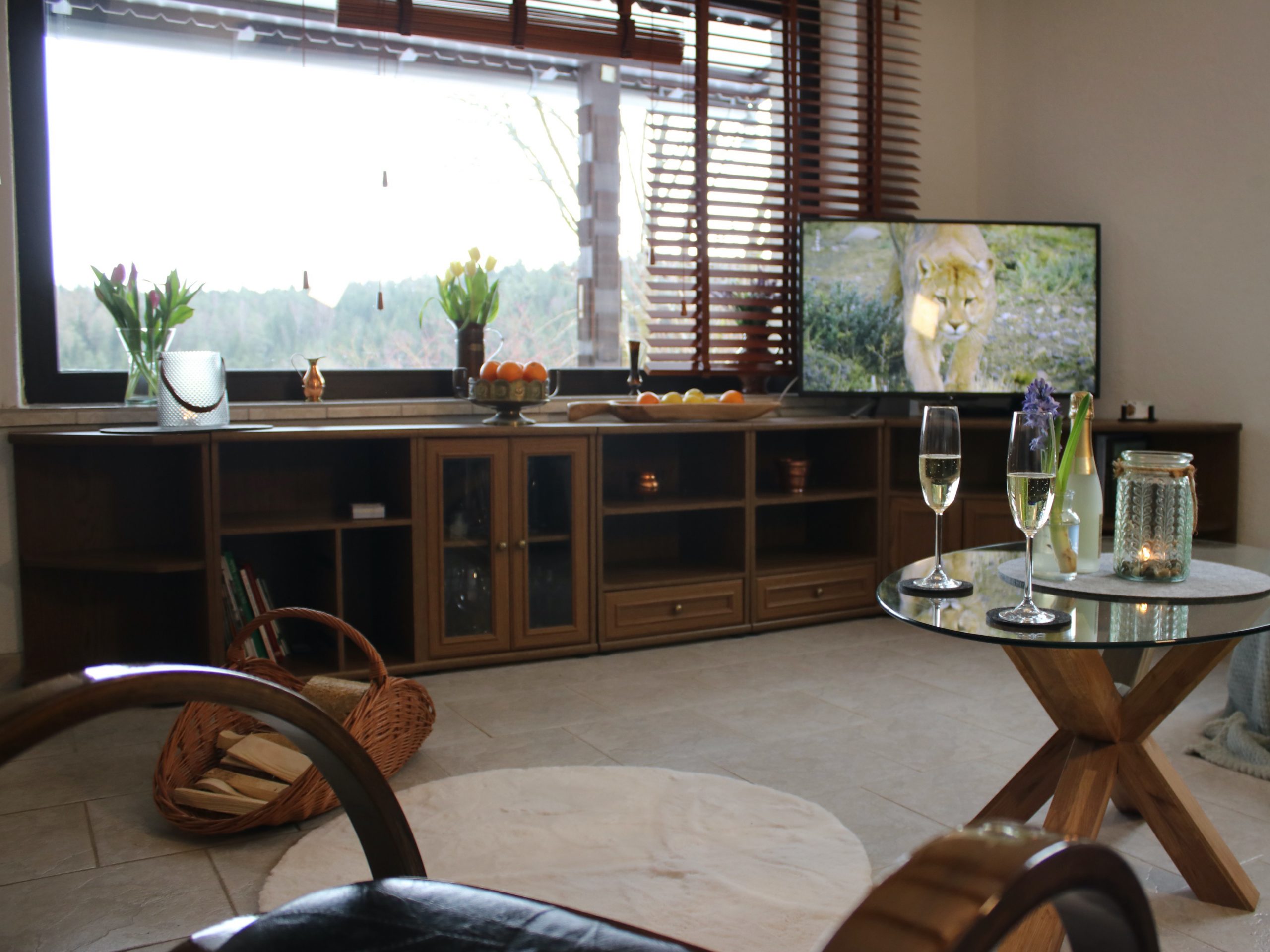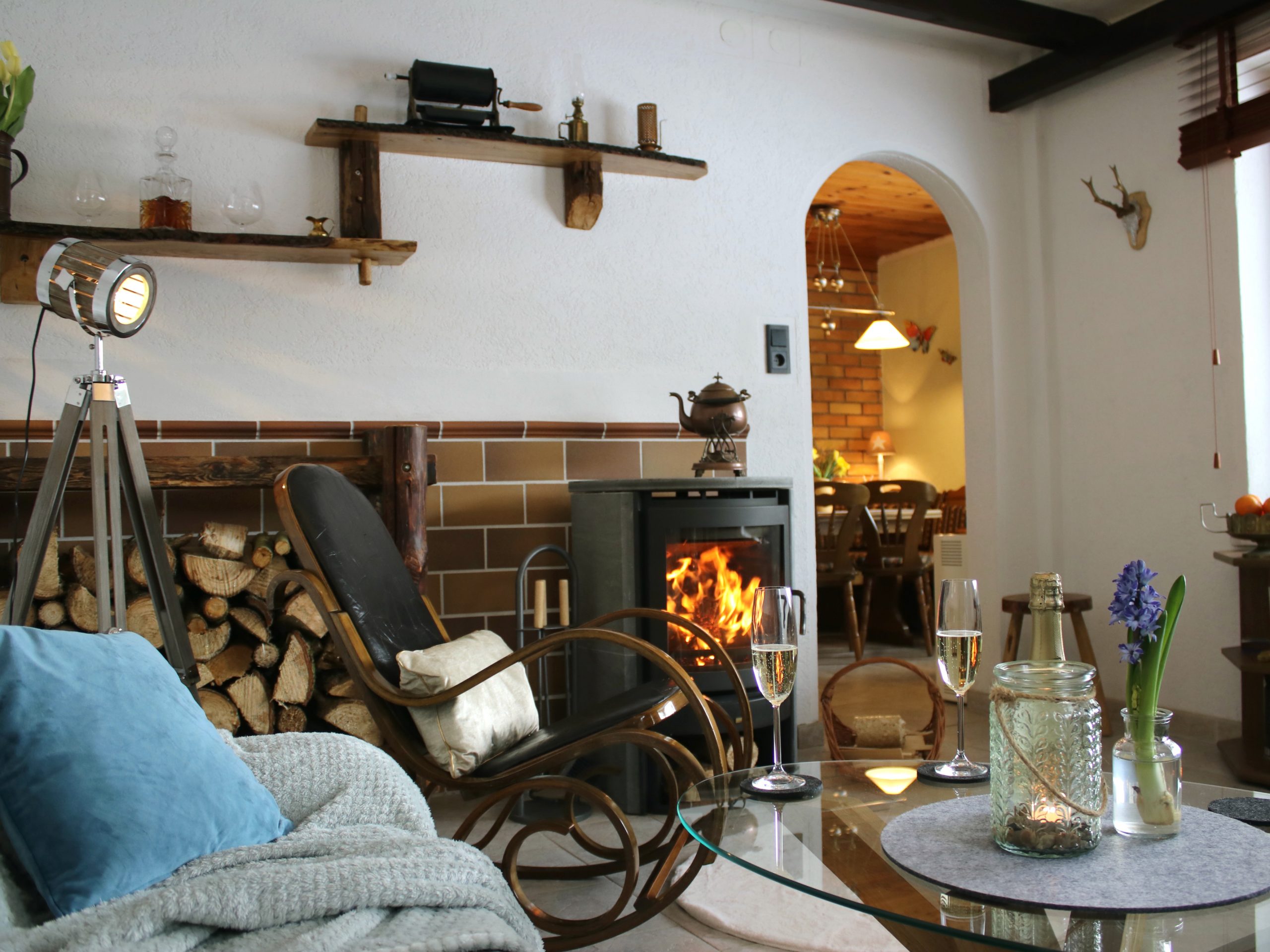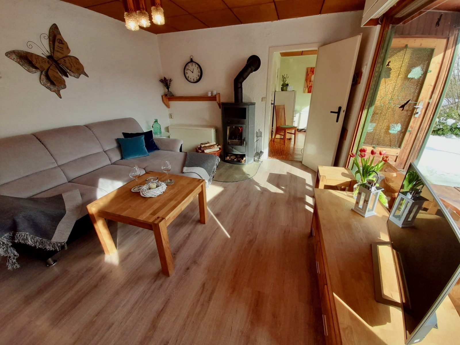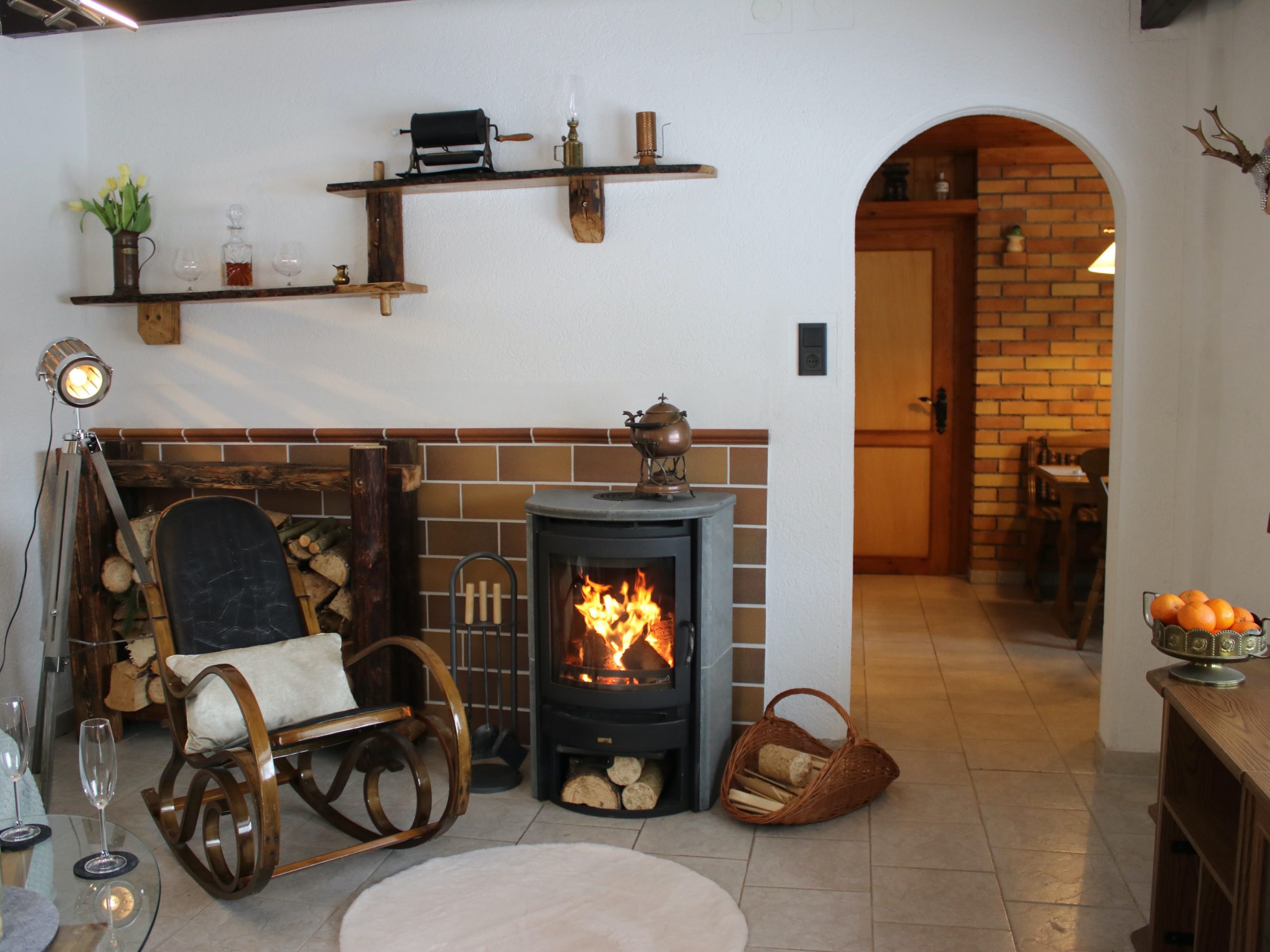 Wohnzimmer mit Kaminofen, Smart TV / Radio, Schlafcouch