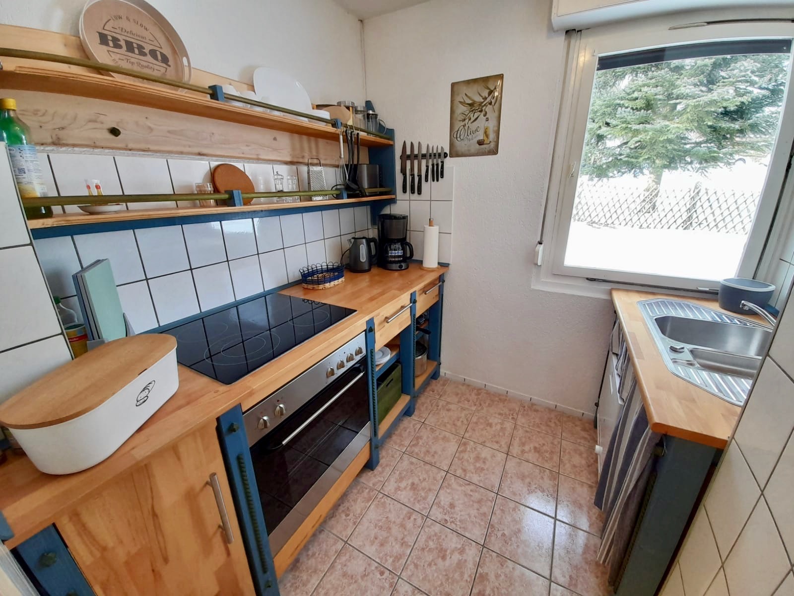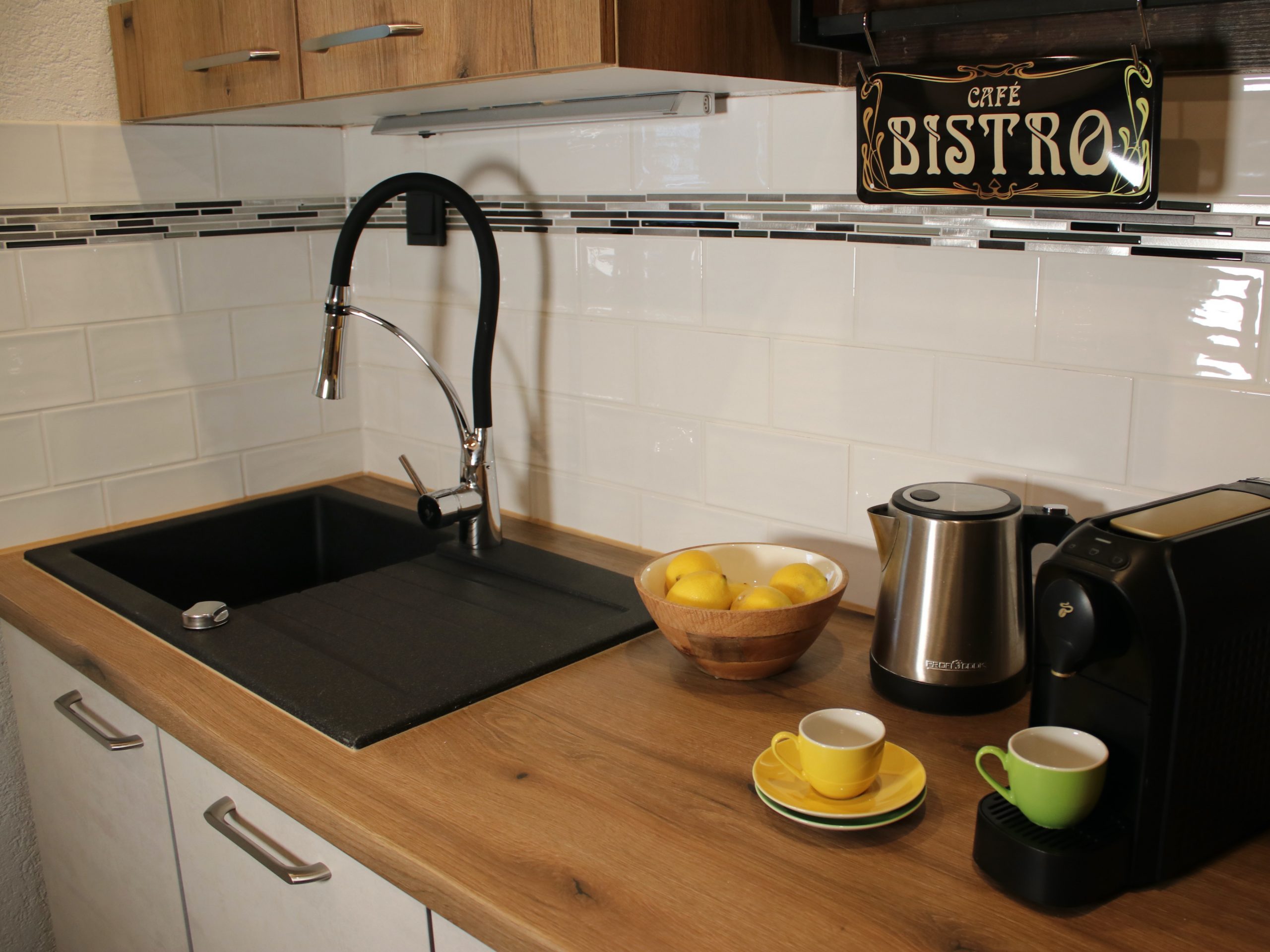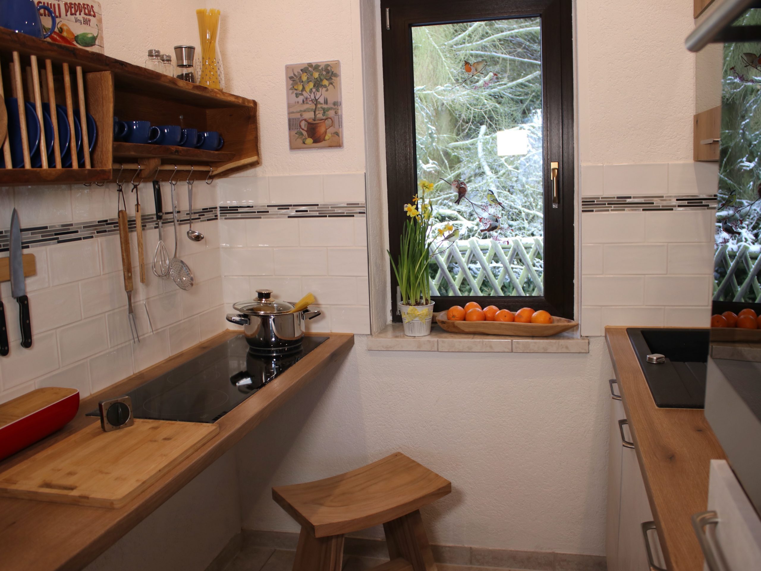 Küche mit Geschirrspüler, Cerankochfeld mit Backofen, Kühlschrank mit Gefrierfach