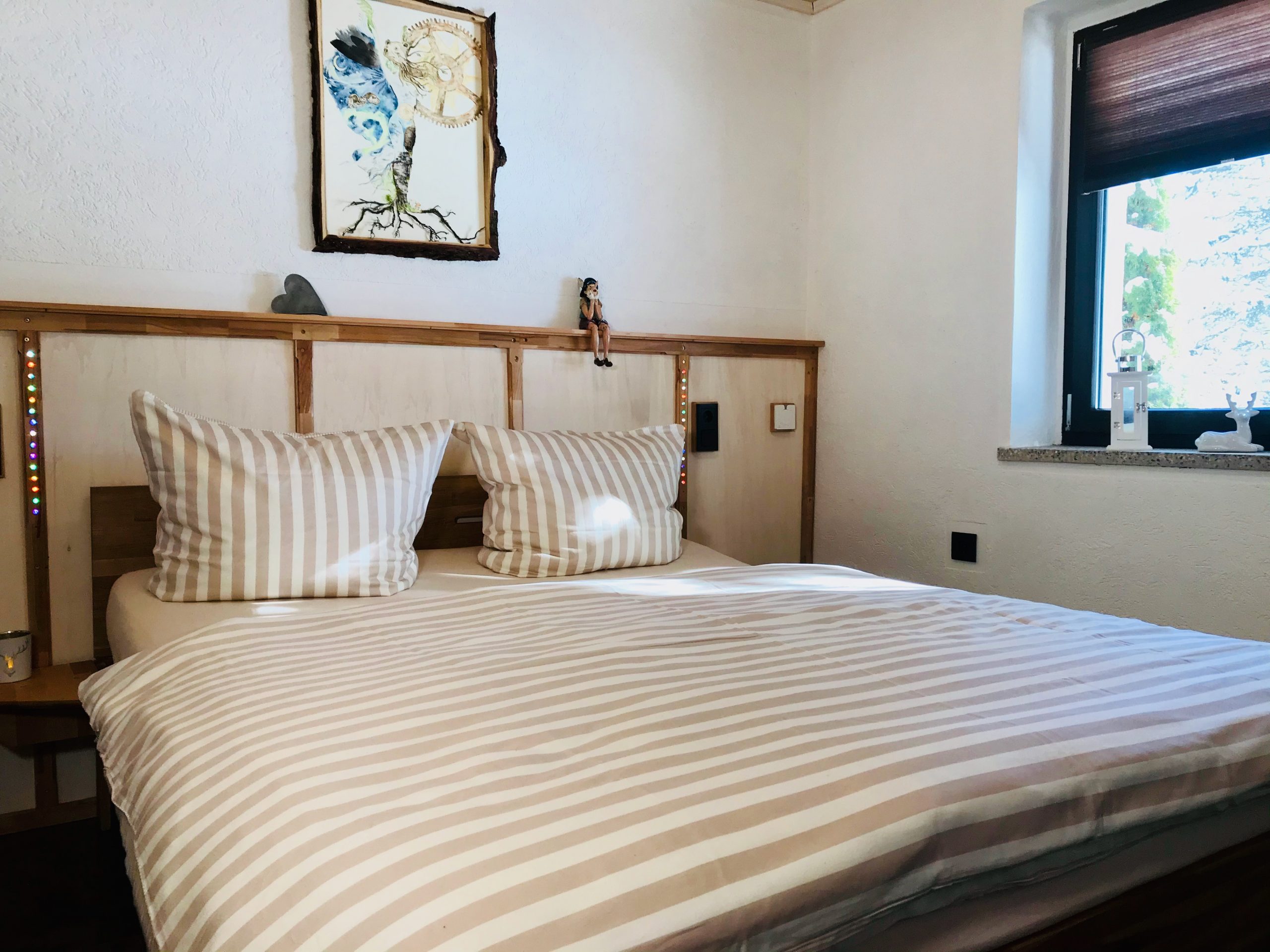 Ein Schlafzimmer mit Doppelbett (Schlafplätze im Haus für insgesamt 3 Personen)