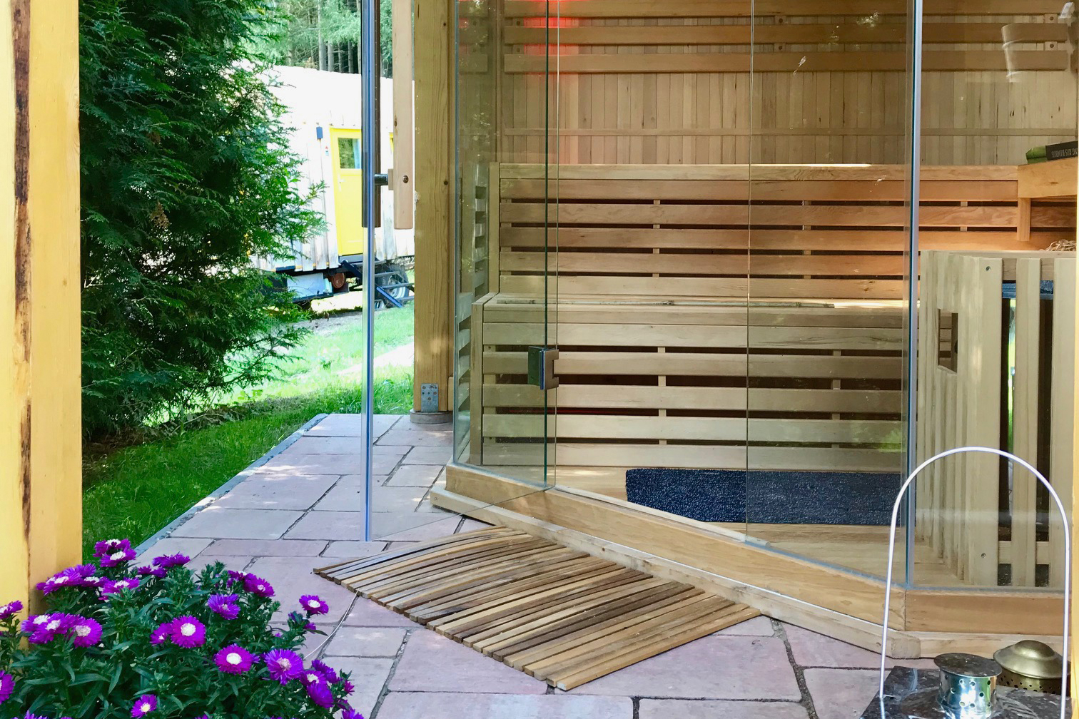 Dieses Motto gilt auch in unserer kleinen aber feinen Gartensauna mit Blick ins beruhigende Grün. Nichts geht über die wohltuende Wärme nach einer tollen Wanderung durch den Schnee oder einfach zum Regenerieren der Muskeln nach einer sportlichen Radrunde. Erholung pur!